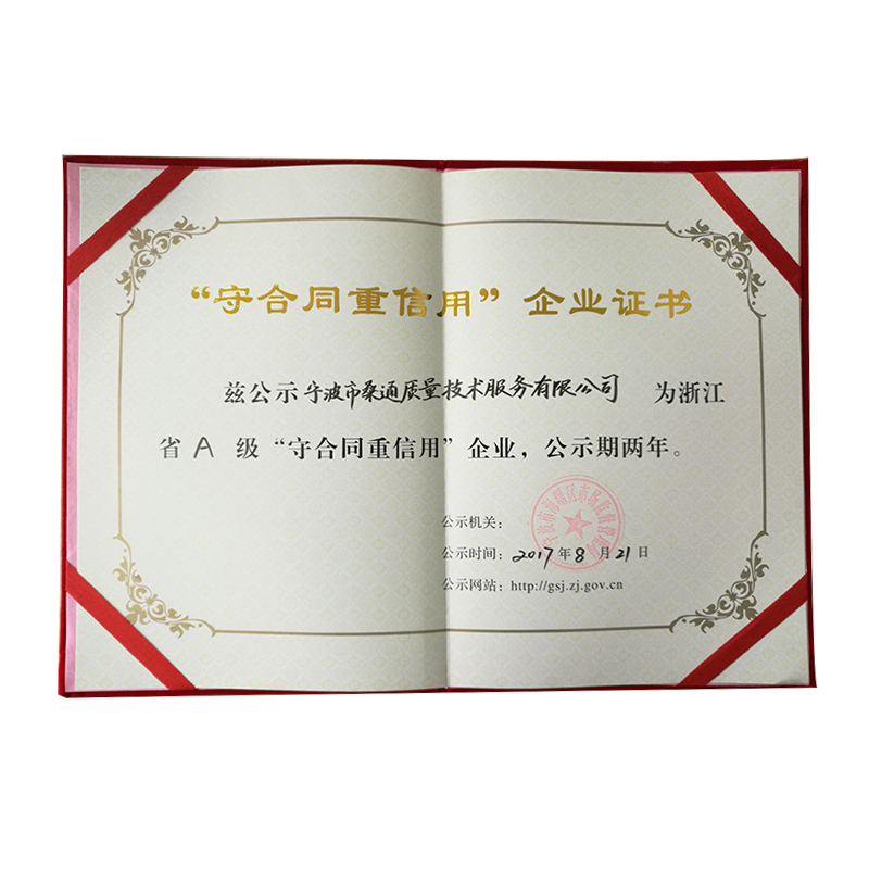 "守合同 重信用" 企业证书